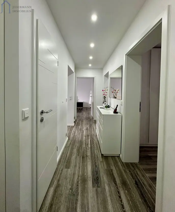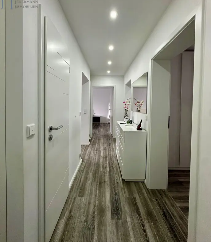 Die Wohnung wurde einer umfassenden Kernsanierung unterzogen, bei der alle wesentlichen Bereiche wie Elektrik, Rohre, Heizkörper sowie die Badezimmer renoviert wurden.