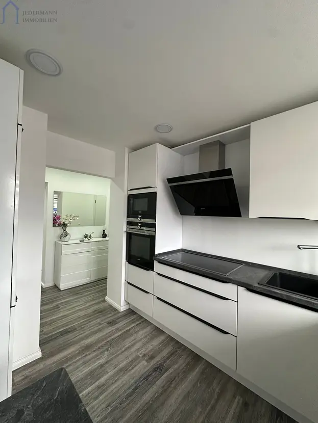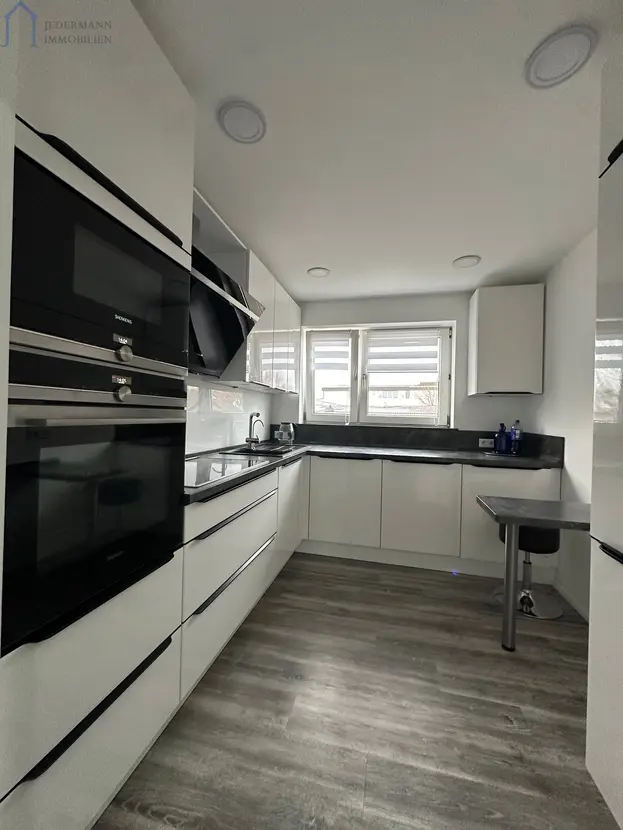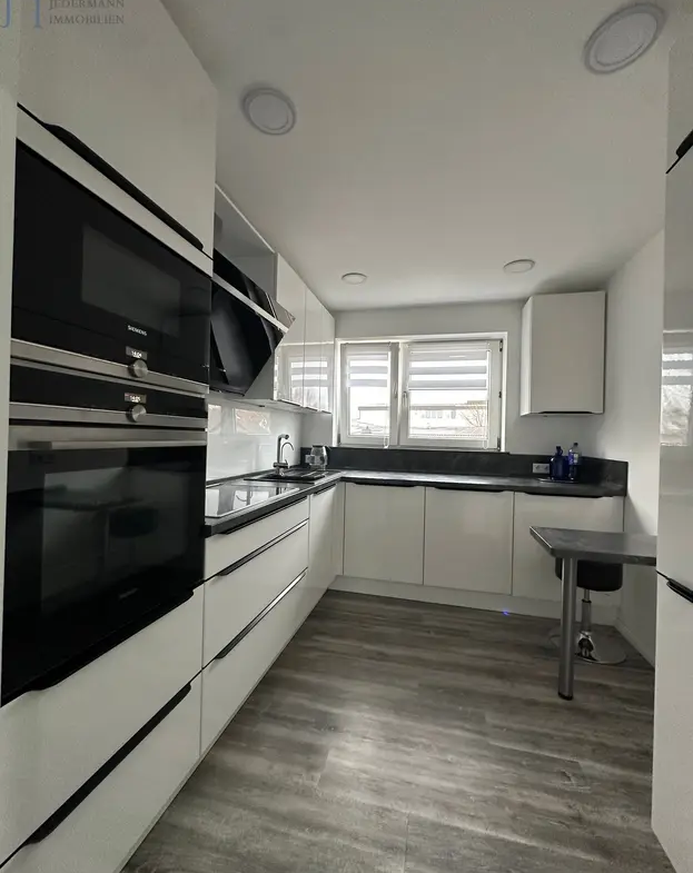 Die moderne Einbauküche ist ausgestattet mit hochwertigen Geräten von Siemens.