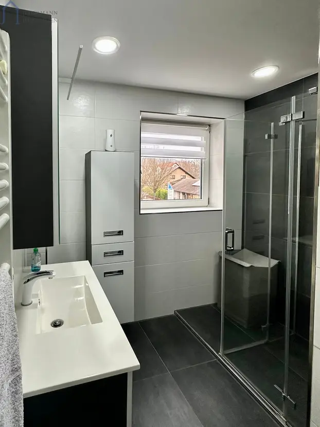 Freuen Sie sich auf ein luxuriöses Badezimmer mit einer ebenerdigen Dusche, die mit Tageslicht durchflutet wird.